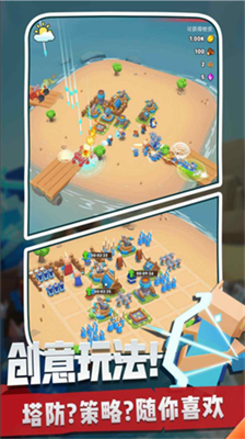 1、岛屿攻防系统——每个岛屿拥有独特防御体系,玩家可研究城墙夹角、陷阱布局等建筑学技巧,打造固若金汤的军事要塞。
