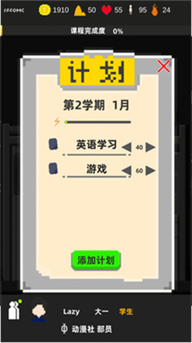 1. 时间管理系统:每日可分配时段进行能力提升或休闲娱乐