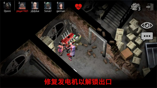 2、12位可选角色涵盖考古学家、机械师、退伍军人等职业,每位角色携带专属道具箱,例如信号弹可短暂致盲追猎者,医疗包能治疗队友创伤状态