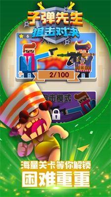 《子弹先生狙击对决》是一款以轻松幽默画风打造的射击竞技手游,其核心玩法围绕精准射击与策略对战展开。游戏通过多样化的关卡设计赋予每场战斗独特目标,玩家需灵活切换战术应对不同场景。数十种特色武器与角色供玩家解锁使用,从经典狙击枪到未来科技装备,搭配各具职业特性的角色形象,构建出多元化的战斗体系。游戏更创新性融入团队竞技、生存挑战等玩法模式,搭配动态光影渲染的3D场景,为玩家带来沉浸式枪战体验。