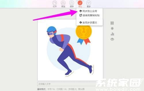6、实现平台同步:在弹出的功能选项中,选择"同步到公众号"指令。系统将自动完成内容传输并在公众号素材库生成待发布的图文消息,此时可登录公众号后台进行二次校验和定时发布设置。